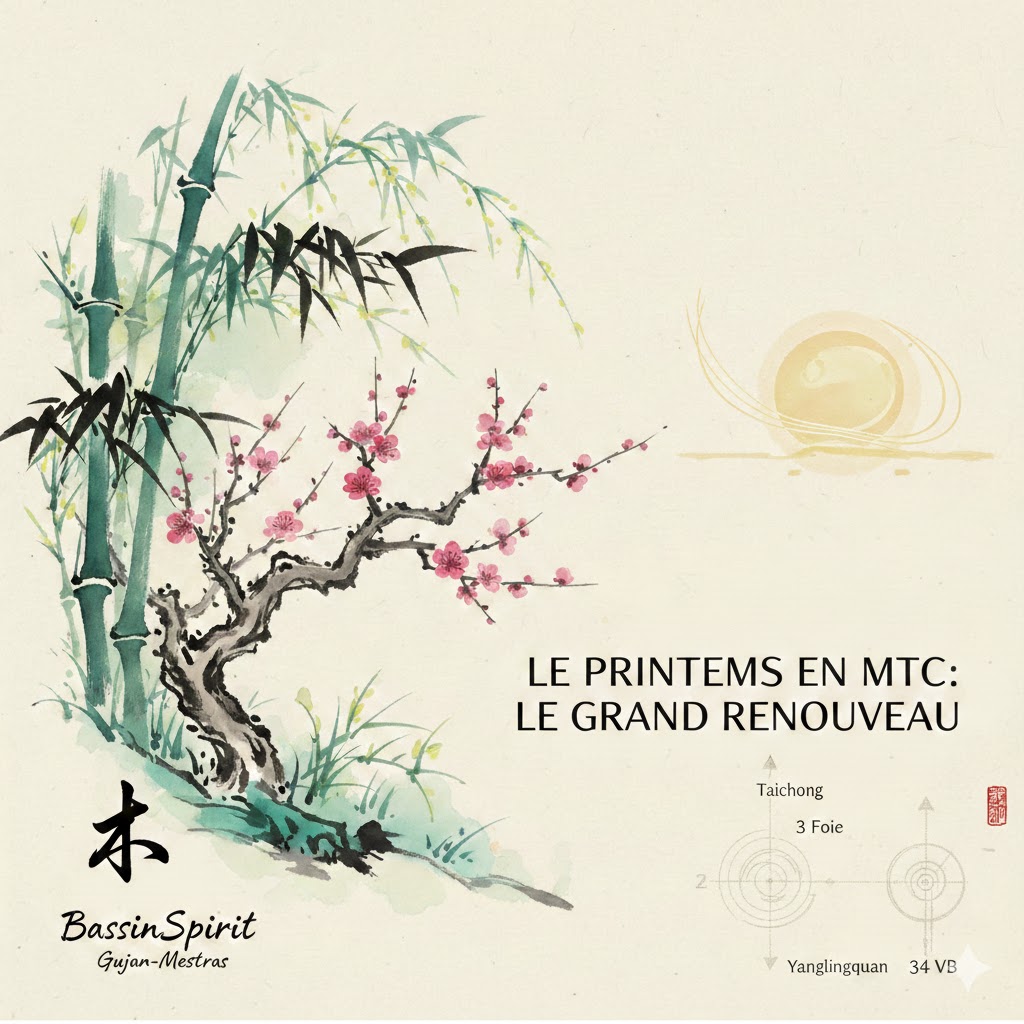En Médecine Traditionnelle Chinoise, le printemps est associé à l'élément Bois. Après le calme et l'introspection de l'hiver, l'énergie (le Qi) jaillit de la terre. C'est la saison de la naissance, de la croissance et de la planification.