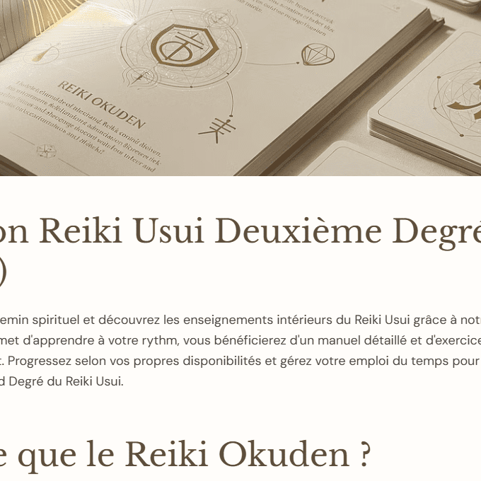 Vous avez déjà ressenti les bienfaits du premier degré de Reiki et vous souhaitez aujourd'hui approfondir votre pratique ? En tant que Maître Enseignant Reiki depuis 2011, j'ai le plaisir de vous proposer ce manuel complet dédié au 2ème degré (Okuden).