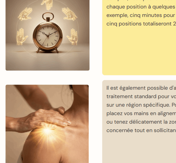 | Le Soin sur Autrui | Maîtriser les 5 positions fondamentales des mains (en présentiel ou à distance). |
